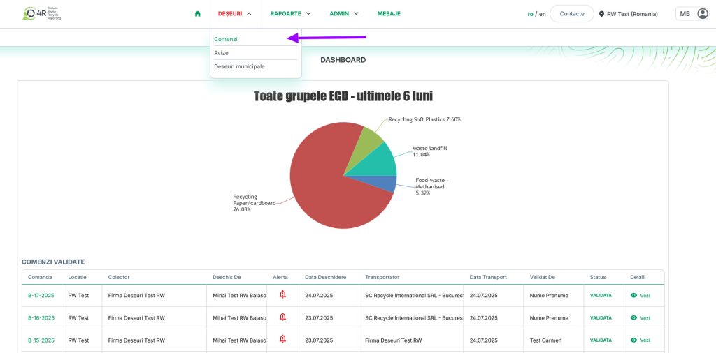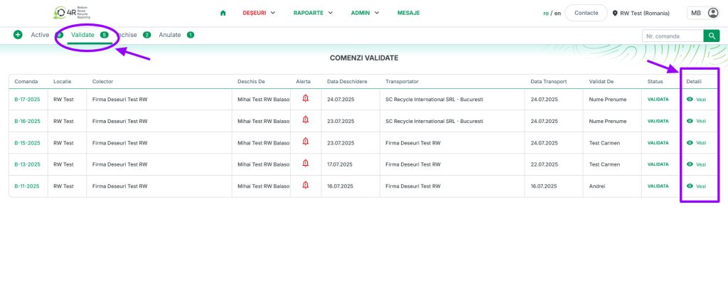 4.Mergi pe Comenzi si pe tab-ul Validate ( apar doar comenzile validate de catre Partener sau Colector)