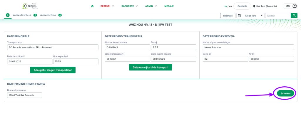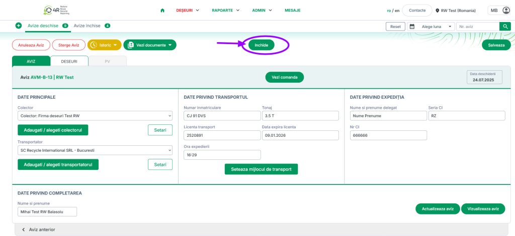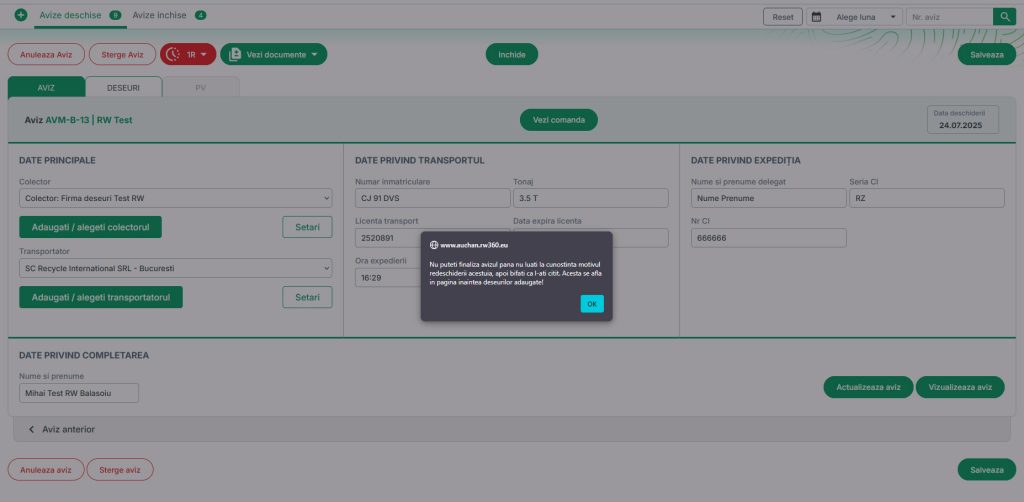8.3 Daca toate datele sunt corecte si au fost verificati toti pasii, putem inchide avizul