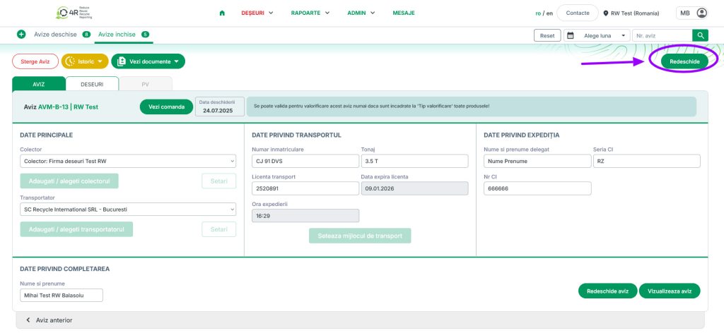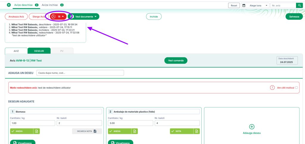 10. Poti redeschide avizul daca datele adaugate nu sunt corecte/complete, apare o fereastra pop-up unde trebuie trecut motivul redeschiderii