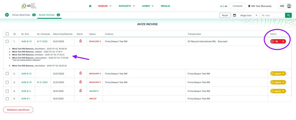 INFO: In dreptul lui apare in coloana Istoric butonul de culoare rosie 1R (acest aviz a avut o revizuire)